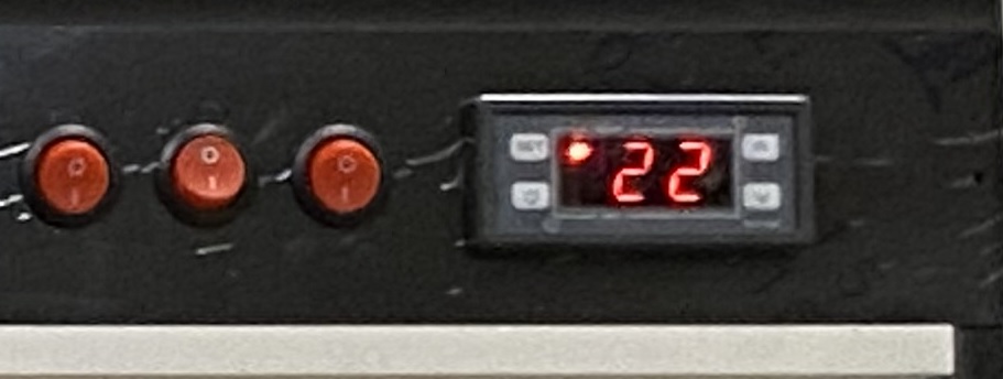 When you switch the plug into electricity socket and turn on “the first button” i.e  one near thermostat the thermostat turns on. Temperature displayed at this time is “the current temperature” inside the vivarium. The bright red dot near temperature indicates the heat source is on. Once the desired temperature is reached, the electric supply will cut off and bright dot will go dim.