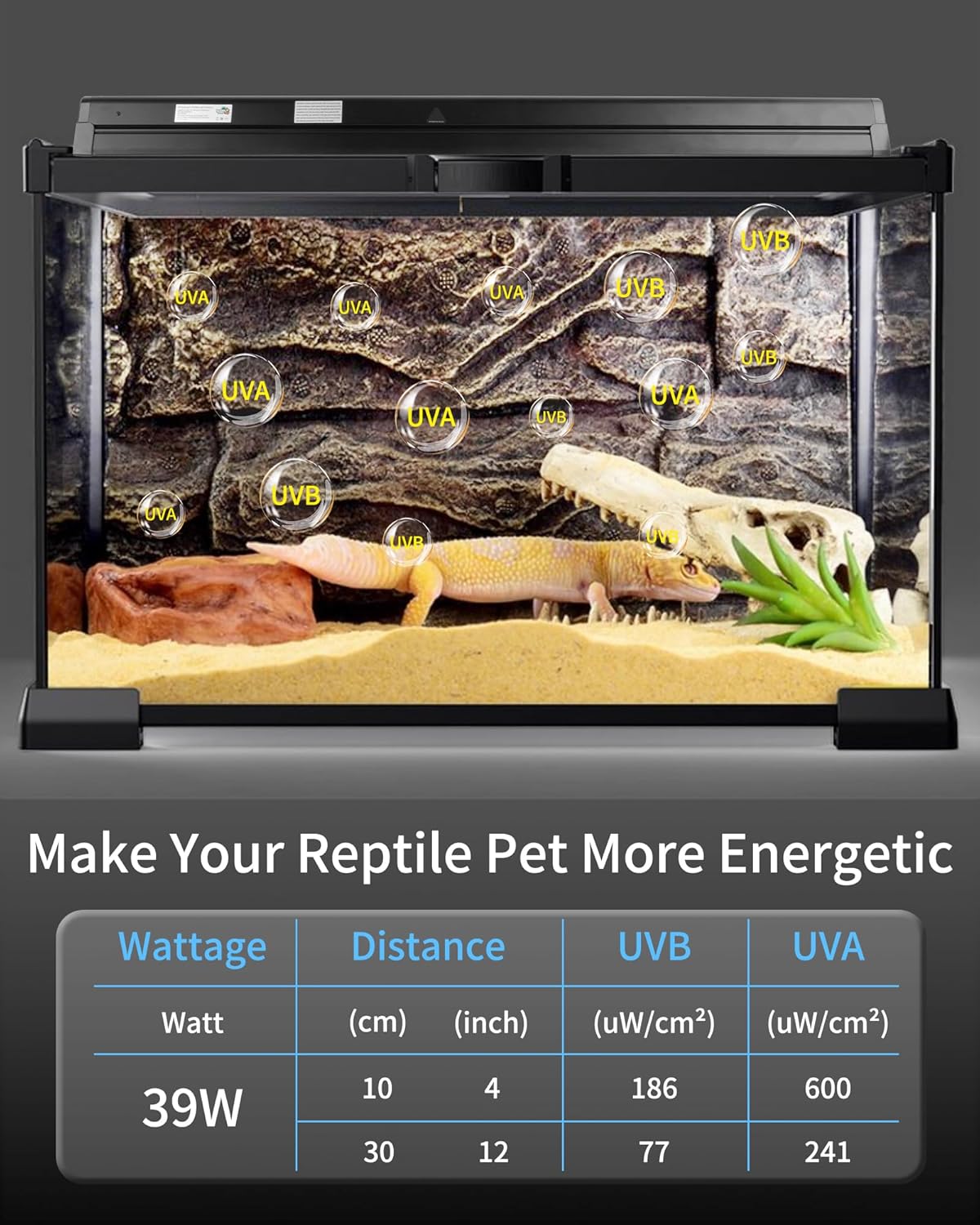 - Excellent Lighting Effect – T5 uvb reptile light fixture kit provides higher brightness and more even lighting, creating a comfortable habitat for your pets. Colors are more vibrant and details are clearer when viewing reptiles. The 10.0 uvb light for reptiles is suitable for all desert area reptiles and amphibians, such as lizards, bearded dragons, chameleons, geckos, turtles, snakes, iguanas, frogs and more.